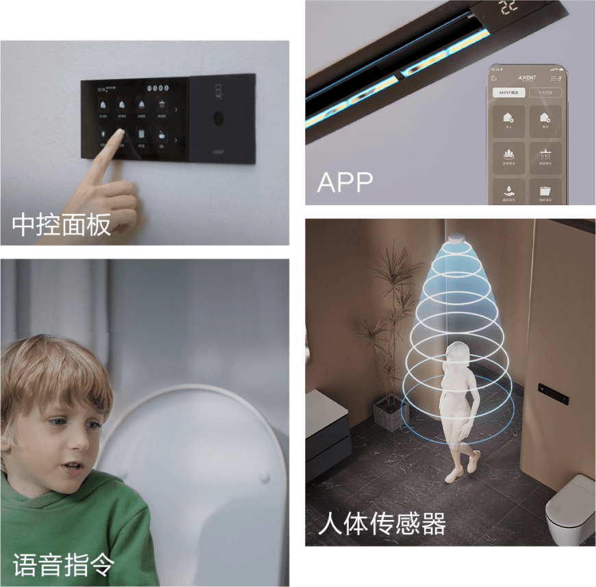 其主题支柱为 AXENT OS V1.0 智浴体例,援助中控面板、APP、语音、人体传感器四大无教化交互,联动卫浴、照明门窗、地暖空净等六大主题体例,实行跨修造协同的空间聪敏化。