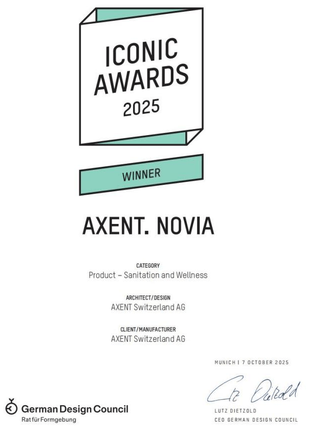 AXENT恩仕NOVIA全景聪敏浴室,依赖打破性的计划外达与用户导向的革新力,正在产物类-卫浴强壮(Product - Sanitation and Wellness)赛道中脱颖而出,获胜摘得大奖,为品牌计划能力再添邦际巨擘认证!